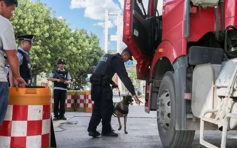 六月高溫蒸烤下的云南保山,白云懸浮在山尖,湛藍的天空無遮無擋,陽光直射大地,刺得人睜不開眼,高強的紫外線落到皮膚上感覺火辣辣的……保山芒顏邊境檢查站里熱浪襲人,車來車往、馬達轟鳴。這里地處怒江大峽谷深處,距離世界主要毒品集散地“金三角”僅350余公里,作為杭瑞高速公路上唯一常設邊境檢查站,是堵住境外毒品流入內地的最后一道固定關卡。
