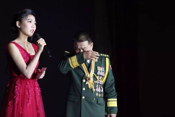 2017年,在“圓夢一代·長安劍兩周年致敬政法英雄”活動中,印春榮看到妻子錄制的視頻,泣不成聲。資料圖