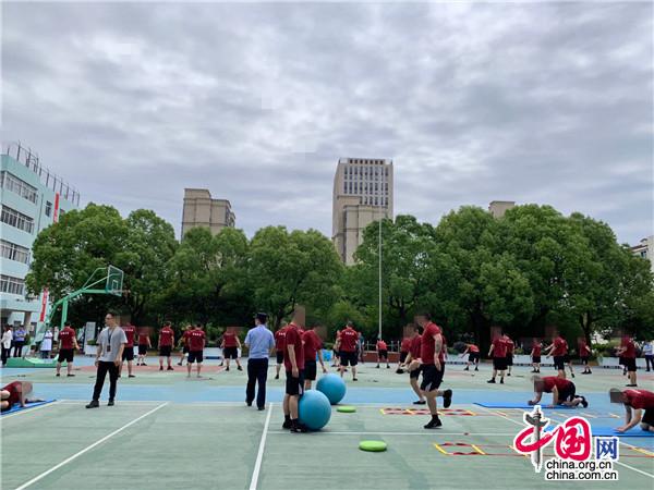 上海市高境強戒所戒毒人員進行健身操訓練。中國網(wǎng)記者 金慧慧 攝