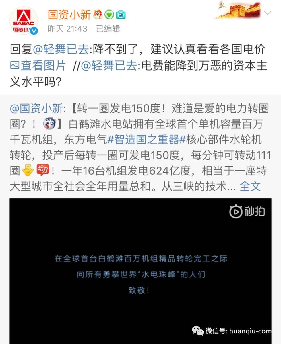 網(wǎng)友@輕舞已去 為此提問@國資小新: “電費能降到萬惡的資本主義水平嗎?”