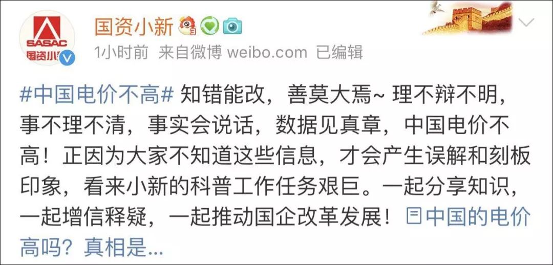網(wǎng)友道歉后,@國資小新也做出了回應:理不辯不明,事不理不清,事實會說話,數(shù)據(jù)見真章,中國電價不高。正因為大家不知道這些信息,才會產生誤解和刻板印象。
