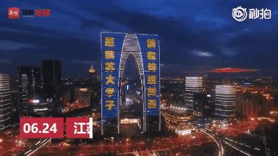 6月24日傍晚,蘇州大學點亮“東方之門”,為全體畢業生送祝福:“愿我蘇大學子,前程錦繡如畫!”