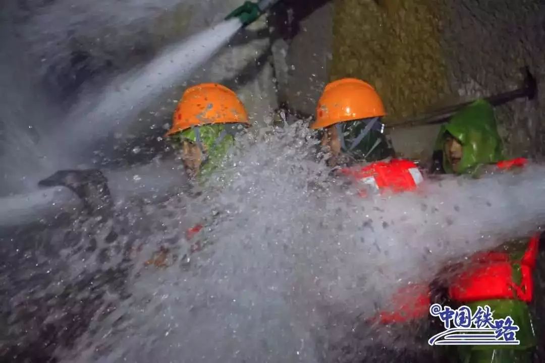 大柱山隧道開工以來,隧道已經涌水約2億立方米,相當于15座西湖。隧道進口施工人員常年帶水作業,即使穿戴雨衣都會濕透。中鐵一局建設者不但要經常在“水簾洞”中“淋浴”,還會經歷“桑拿”。在隧道的出口,洞內施工長期處于40℃左右和85%以上濕度的惡劣施工環境,為了確保施工作業人員身心健康,項目部通過長年給隧道施工最前方的掌子面運送冰塊降溫。