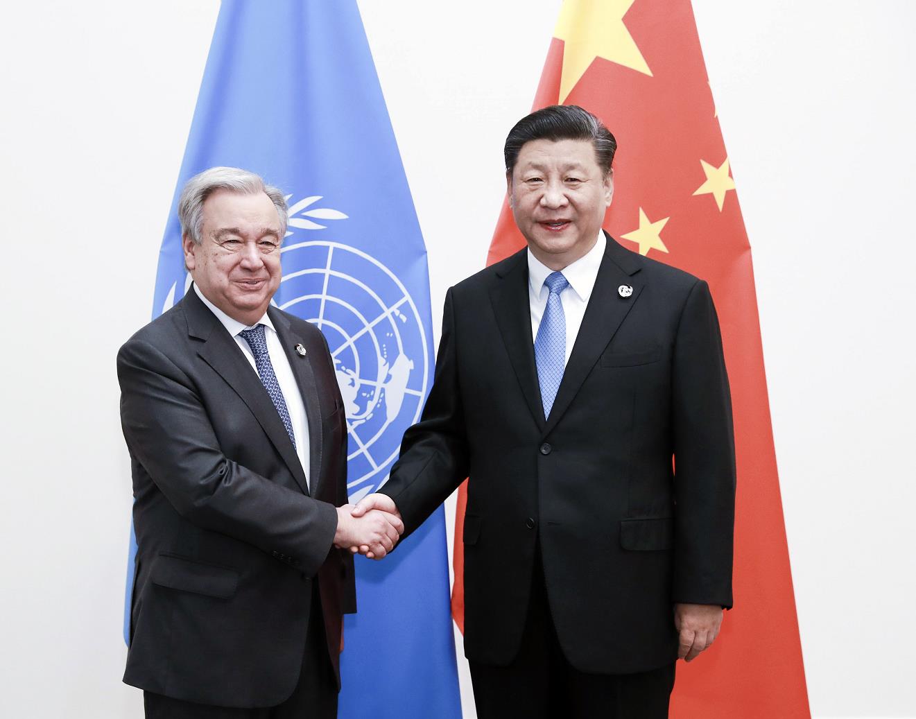 習近平指出,中國始終支持多邊主義,支持聯合國在國際事務中發揮積極作用。形勢越是復雜嚴峻,越要彰顯聯合國的權威和作用。我們要推動全世界在聯合國旗幟下,實現更大團結和進步。中國將繼續以實際行動支持聯合國和秘書長的工作。