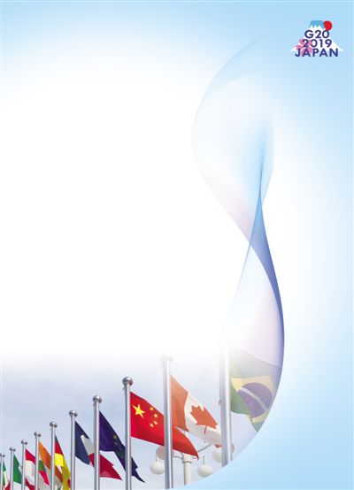 G20大阪峰會會場外,各國國旗迎風飄揚。