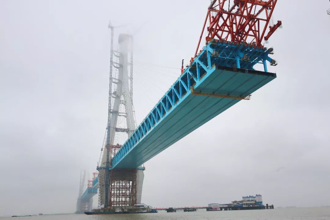 在建設過程中,中鐵大橋局相繼克服巨型沉井施工、大體積混凝土灌注、超高橋塔混凝土抗裂等施工難題,采用DOKA液壓爬模體系,合理布置大型塔吊,在確保工程質量前提下,大幅縮短施工時間,創造了超高空主塔快速施工新紀錄。