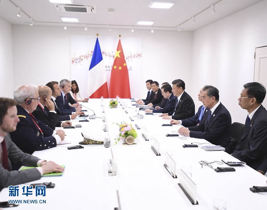 6月29日,國家主席習(xí)近平在大阪會(huì)見法國總統(tǒng)馬克龍。 新華社記者 燕雁 攝