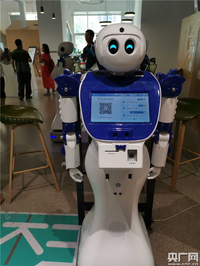 天津市人力資源和社會保障局定制的機器人“小雷”。(央廣網記者 郭書瓊 攝)