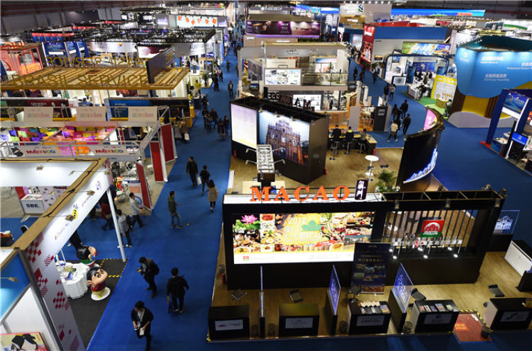 參觀者在上海舉行的首屆中國國際進口博覽會服務貿易展區參觀(2018年11月10日攝)。新華社記者 韓瑜慶 攝