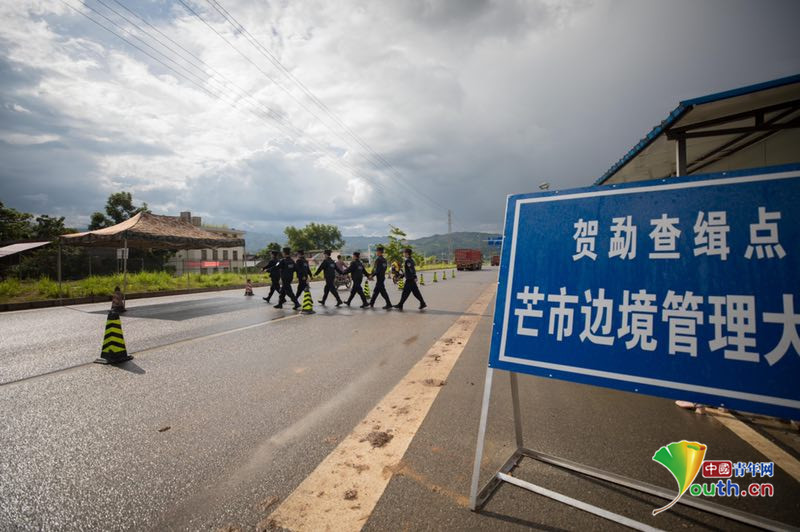 芒市邊境管理大隊查緝隊員在賀勐查緝點執勤。 莊興 攝