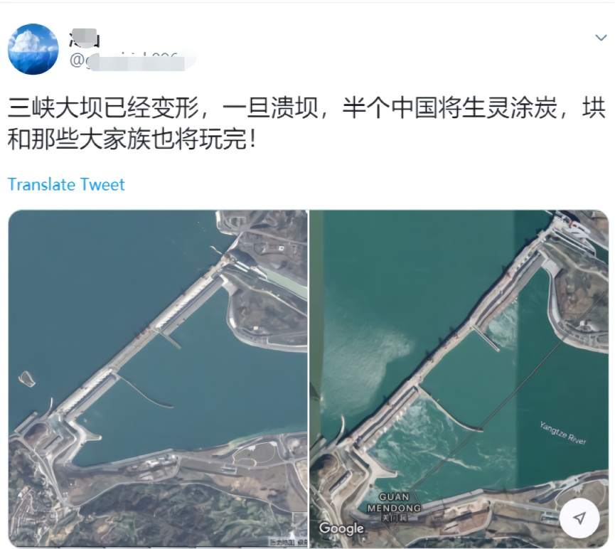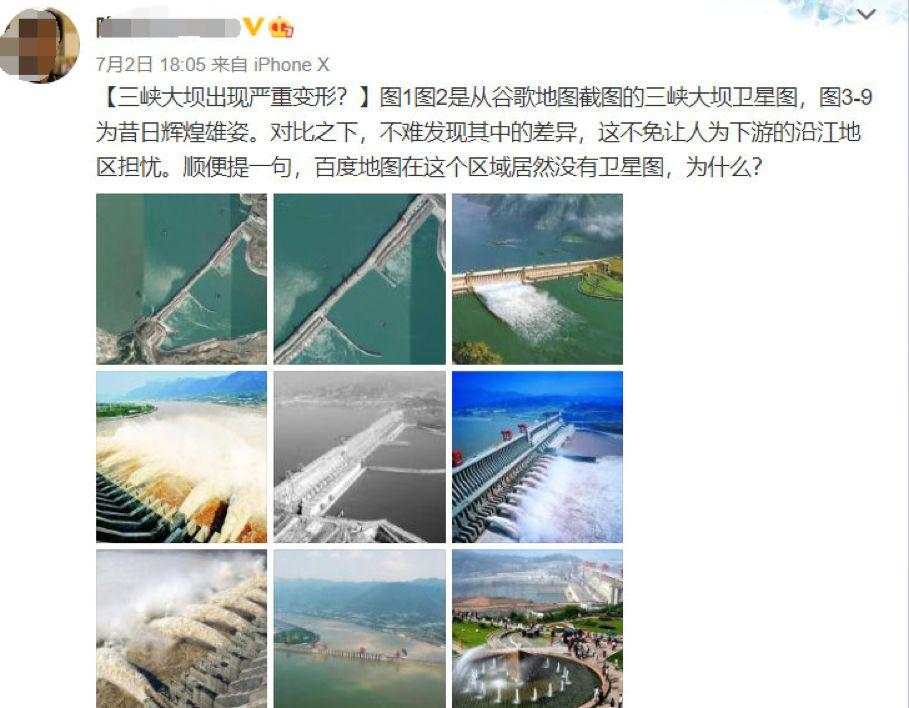 事情的經過是這樣的,就在3天前的7月1日,境外一個反華賬號突然發帖宣稱“三峽大壩已經變形,一旦潰堤,半個中國將生靈涂炭”。