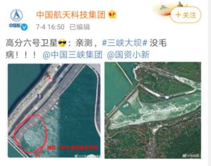 結果,常年遭受境外各種抹黑中國航天謠言摧殘的中國航天科技集團,又專門拿出我國高分辨率、高質量成像、高效能成像的“高分六號”衛星,以一種“用牛刀殺雞”的方式,展現了并無異常的三峽大壩的圖片,再一次澄清了此事。