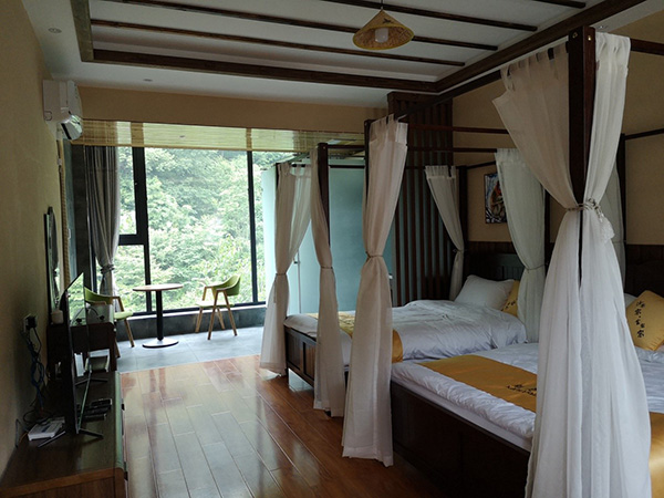 2016年,看到這一前景的代輝決定回鄉,投入40萬元給自家平房加蓋一層,裝修出三間屋子當做客房。其中,自籌20萬,貸款20萬,享有三年貼息貸款優惠,由政府貼息7%。代輝還有烹飪手藝,村里辦紅白事總請他當主廚,因此,農家樂既是旅店又是餐館,生意一點不愁,“旺季一天能有30來人,住宿總是滿員,至少提前一周預定,一年下來能賺7-8萬塊。”