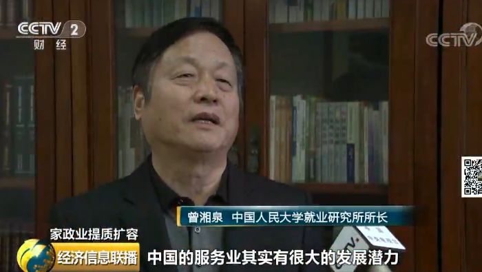 中國人民大學就業研究所所長 曾湘泉:中國的服務業其實有很大的發展潛力,需要我們去提供專業化的培訓,培養全社會的專業化意識和職業化的意識。
