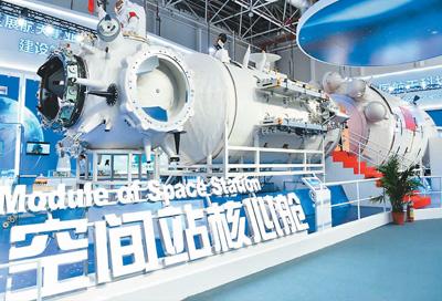 2018年珠海航展上展示的中國空間站核心艙模型。新華社發(fā)