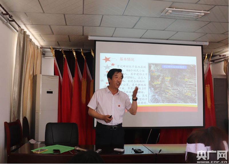 曾記畔村村支書朱玉國介紹脫貧情況(央廣網(wǎng)記者 母晨靜 攝)