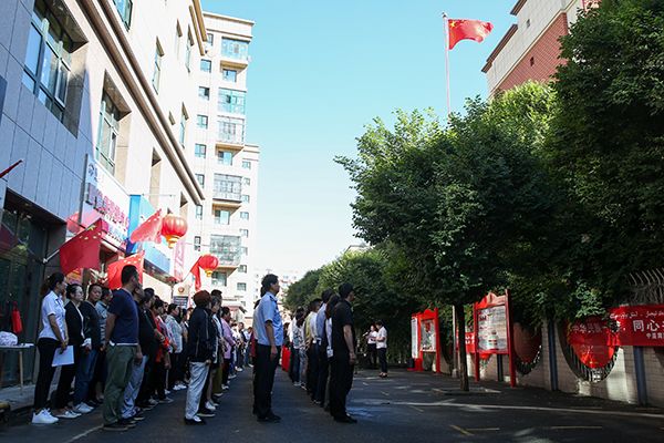 廣州街社區舉行升旗儀式。澎湃新聞記者 朱偉輝 圖