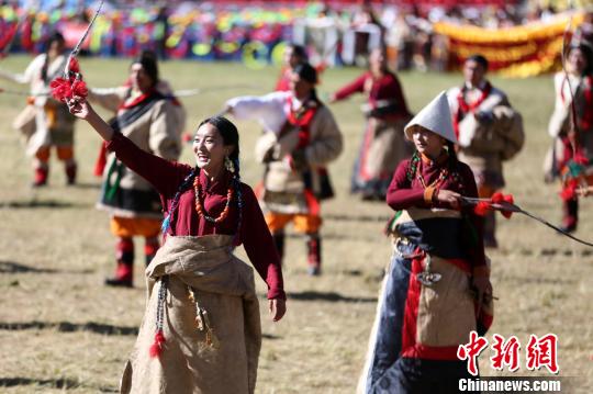 圖為玉樹傳統賽馬節暨雪域格薩爾文化藝術節和三江源水文化節開幕式現場游牧文化展示。 羅云鵬 攝