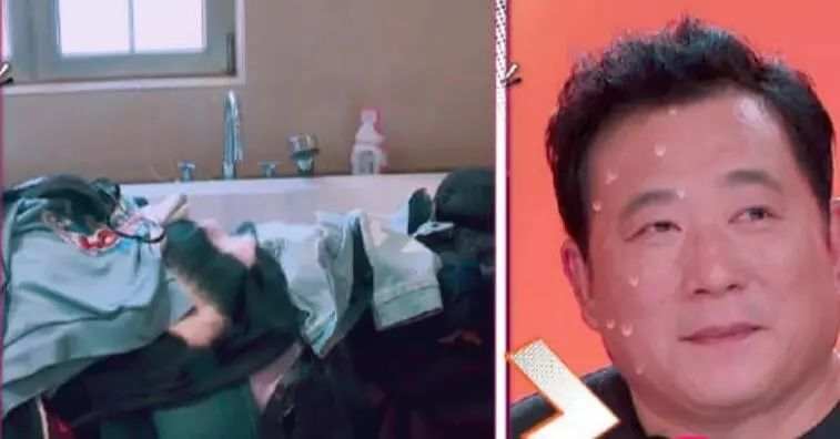 浴缸上堆滿了沒洗的衣服