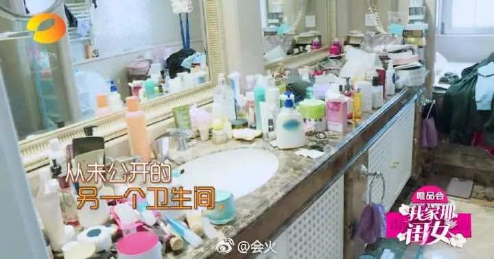 衛(wèi)生間擺滿了各種各樣的化妝品