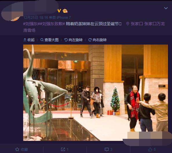 近日,有網友曝光兩張照片,劉強東、章澤天合體現身某滑雪度假村一起過圣誕。照片中劉強東的手還是保護的姿態,放在章澤天的后面。在隨后曝光的一張合照中,兩人也是緊緊挨著。雖有被不少網友吐槽很尷尬,但從照片來看,兩人似乎已經重歸于好。
