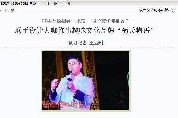 ▲2017年10月,一則關于孫楠推出文化品牌“楠氏物語”的報道 截圖自《青年時報》