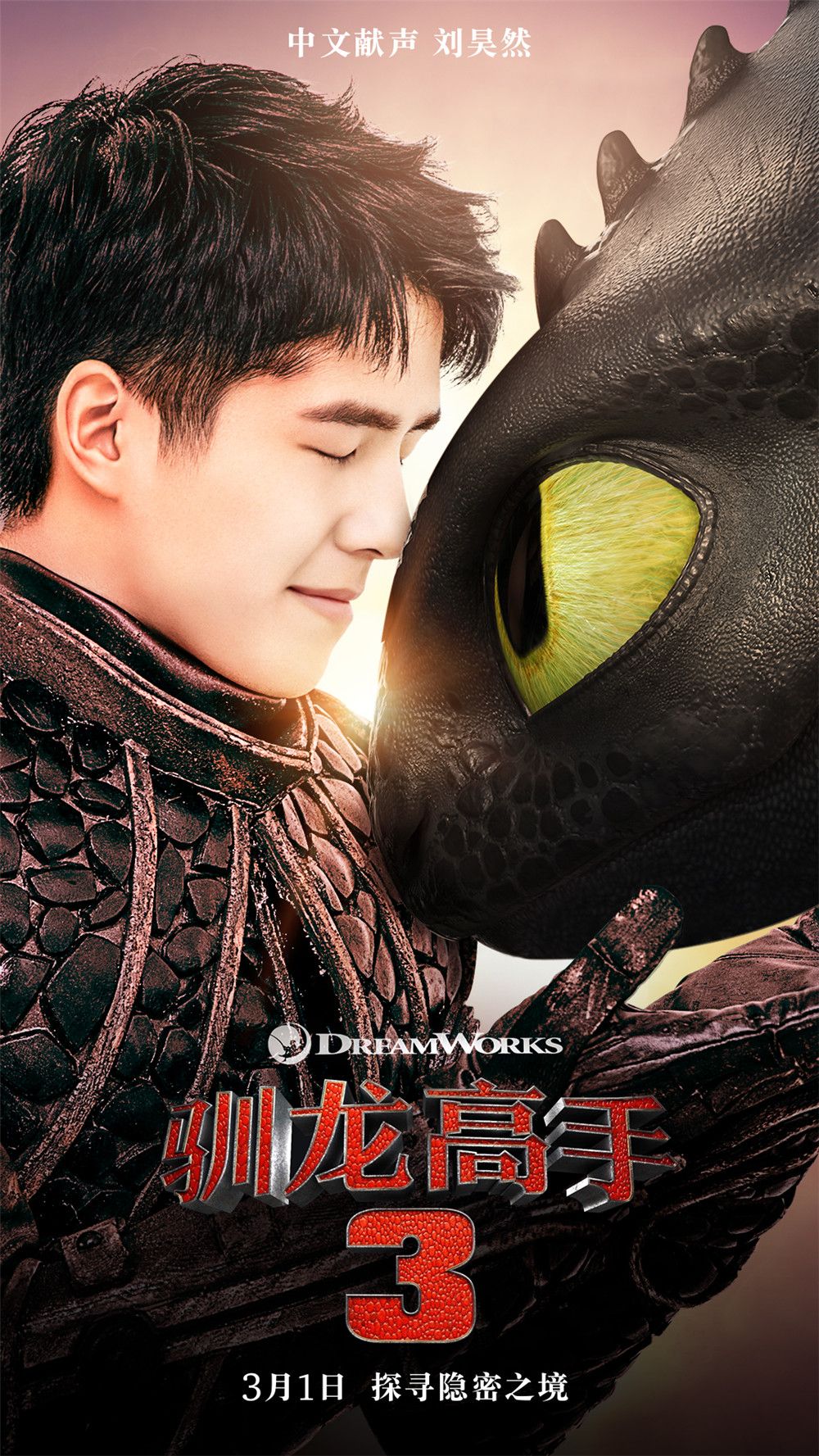 《馴龍高手3》是劉昊然獻聲的首部動畫電影,他因《唐人街探案》系列以及陳凱歌作品《妖貓傳》?等多部大銀幕作品確立了新生代男演員領軍人物地位,環球影業中國市場部高級副總裁黃美儀認為,劉昊然是演繹嗝嗝的最合適人選。?