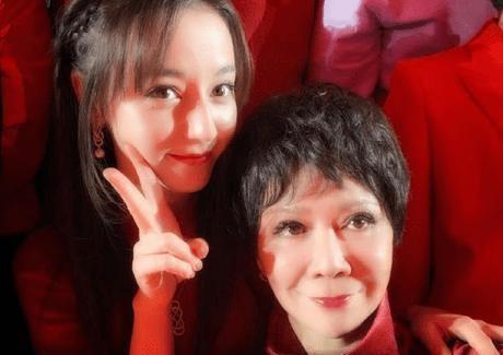 蔡明隨文曬出了自己與熱巴的合照,兩人都穿著喜氣的紅衣裳,熱巴摟著蔡明老師的肩膀俏皮比耶,蔡老師似乎頂著一頭演出用的假發,笑容溫婉,兩人的互動看上去挺親密。