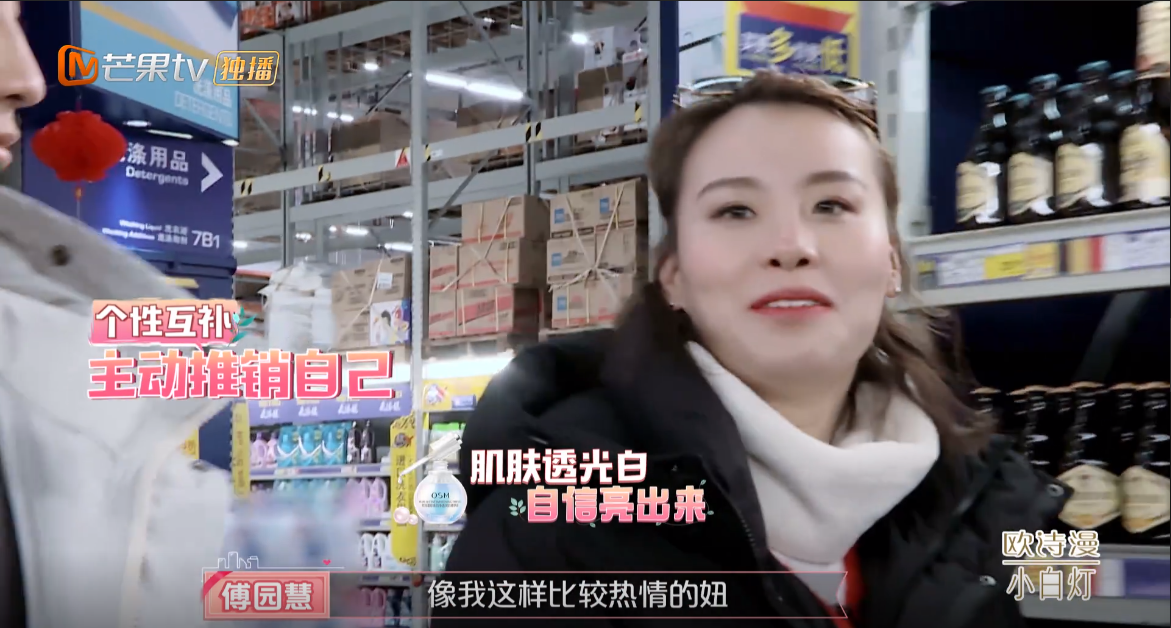 二人到超市一起買晚飯需要的食材,不約而同選擇了火鍋,在男方表示自己曾夢想開個火鍋店時,傅園慧立刻附和,表示開火鍋店、健身房和寵物店是自己一直以來的夢想。隨后,男方說自己平時性格比較高冷,傅園慧“嘚瑟”得表示:那就需要我這樣熱情的妞。