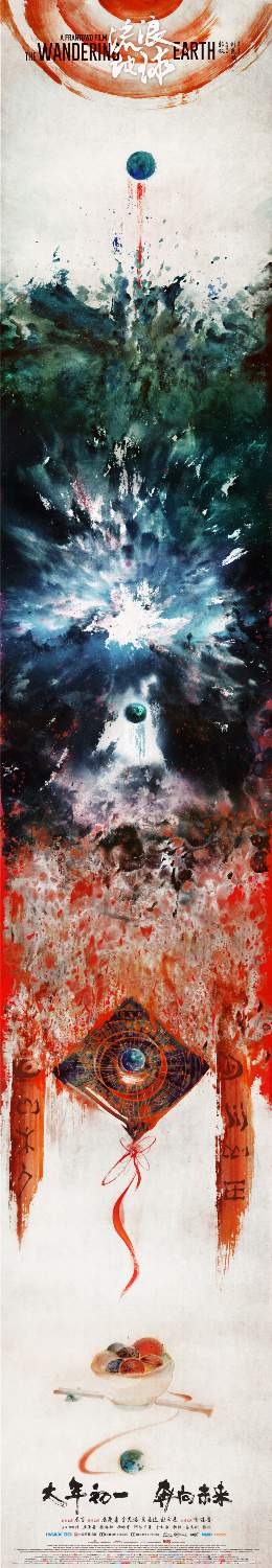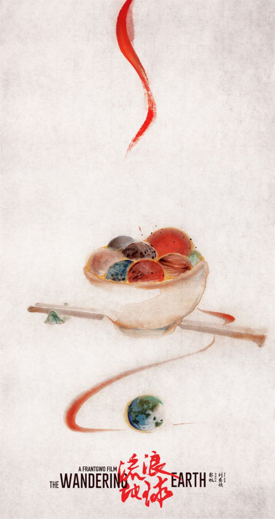 中國(guó)風(fēng)海報(bào)將電影《流浪地球》從頭描繪,在海報(bào)底部將太陽系比作中國(guó)傳統(tǒng)的碗,八大行星作為碗中的一員,當(dāng)“流浪地球計(jì)劃”開始,地球便開始脫離“碗”的桎梏,逃離太陽系。目光上移,在海報(bào)的第二部分,地球進(jìn)入逃逸時(shí)代,墻上的 幅畫展現(xiàn)中國(guó)古 人對(duì)星空宇宙的想象記載,或者說是前太陽時(shí)代對(duì)星空宇宙的記錄,結(jié)合中國(guó)傳統(tǒng)道家卦陣形式進(jìn)行演繹,畫 細(xì)膩古樸,真正從中國(guó)人的理念出發(fā),和電影本身的創(chuàng)作理念不謀而合,海報(bào)上剩下的部分則是展現(xiàn)了電影的重要?jiǎng)∏榕c“流浪地球計(jì)劃”的結(jié)尾,奔向新的“太陽”。