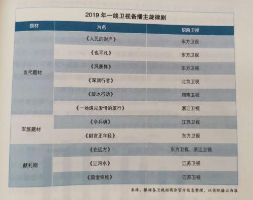 梳理幾大衛視公布的2019年片單可以發現,現實主義題材劇集基本鎖定了年度熒屏的“半壁江山”。今年主旋律劇也將成主流趨勢。例如,2019年熒屏大劇的排播中就出現了六部當代涉案劇,兩部當代軍旅題材劇,三部獻禮劇。