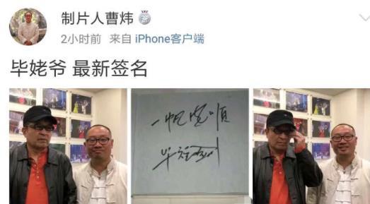 看得出制片人曹煒對畢福劍的加入也是表現的相當興奮,或許也只是單純未節目造勢!18日早上再次更新微博,還曬出了畢福劍的簽名配文:“畢姥爺 ,最新簽名”