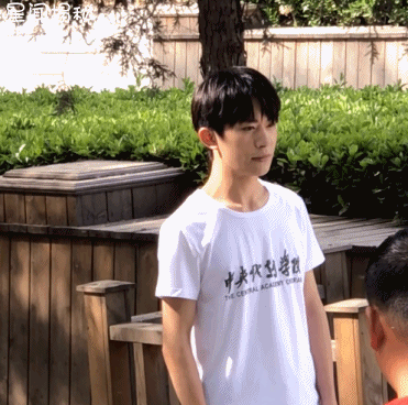 畫面青春氣息滿滿,過于養(yǎng)眼啦!后來太熱了,易烊千璽把外套脫掉了,原來里面穿的是中戲的校服呀!