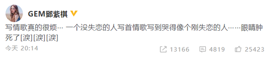 網(wǎng)易娛樂5月5日報(bào)道 5月5日晚,鄧紫棋在社交賬號上發(fā)文吐槽寫情歌很煩,“寫情歌真的很煩……一個(gè)沒失戀的人寫首情歌寫到哭得像個(gè)剛失戀的人……眼睛腫死了!”對此,就有網(wǎng)友支招,稱:“那就寫小甜歌。”鄧紫棋回應(yīng)道:“沒心情!”非常的逗趣,引得網(wǎng)友紛紛圍觀并留言稱:“等你新歌!”“怪不得你寫的情歌都那么好聽,原來使用淚水灌溉出來的!”“那就是你真的融入啦小姐姐。”