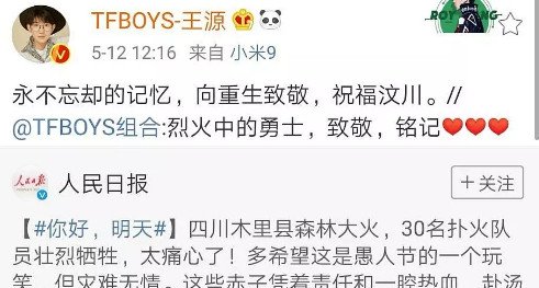 繼去年黃景瑜發(fā)出“綠絲帶”,吳磊發(fā)出“微博文案”之后,今年輪到王源了。這位轉(zhuǎn)發(fā)內(nèi)容倒是沒什么問題啦,但是直接轉(zhuǎn)錯了微博,轉(zhuǎn)成了四川木里縣森林大火的: