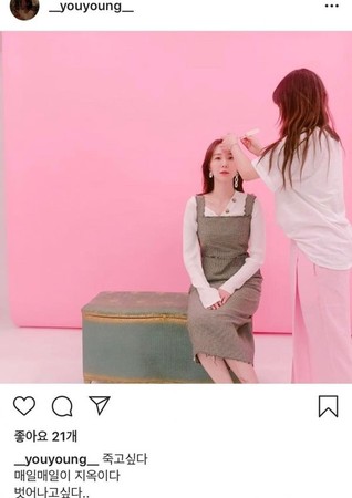 李宥英31日在IG貼出一張工作人員替她整理頭發,看似相當正常的工作照,然而配文卻寫道:“很想死,每天都是地獄,想逃脫這一切。”宛如告別的文字嚇壞粉絲,不過文章也馬上被刪除。
