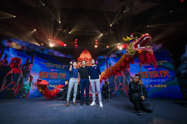 超級英雄電影《蜘蛛俠:英雄遠征》于6月11日在北京舉辦了盛大的新聞發布會及粉絲盛典活動。導演喬·沃茨攜主演“神秘客”杰克·吉倫哈爾和“荷蘭弟”湯姆·赫蘭德空降。好萊塢大片的固定“接地氣”環節這次又有新花樣,三位主創揮舞了充滿東方元素的戰旗,并且搭配舞龍表演,讓三位主演大開眼界。