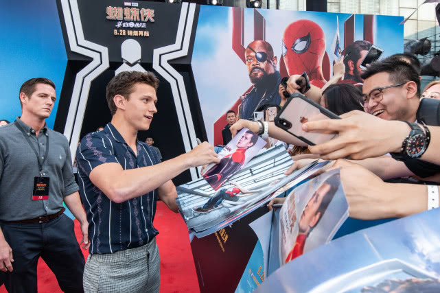 當天,鄰家男孩荷蘭弟氣質微熟有了更迷人的魅力,舉手投足間引發現場尖叫連連。黑色T恤出席的導演喬·沃茨與杰克·吉倫哈爾在中國同樣有無數擁躉,身材高大男神范十足,熟男魅力爆表同樣是全場焦點。導演喬·沃茨與荷蘭弟多次來華早已默契十足,而首次來華的吉倫哈爾面對粉絲如此熱情也很快融入其中。紅毯上,三位主創親切的為粉絲簽名,合影留念,實力寵粉。