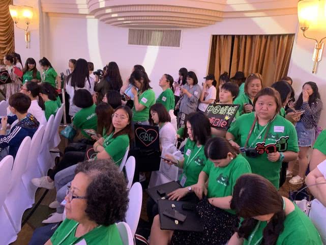 而在這場見面會上,能夠入場的粉絲都事先經過了報名和篩選,他們年齡層次不齊,甚至有一位70歲的奶奶,和眾多小姑娘們一起穿著綠色的會服,舉著燈牌和橫幅為偶像“應援”。
