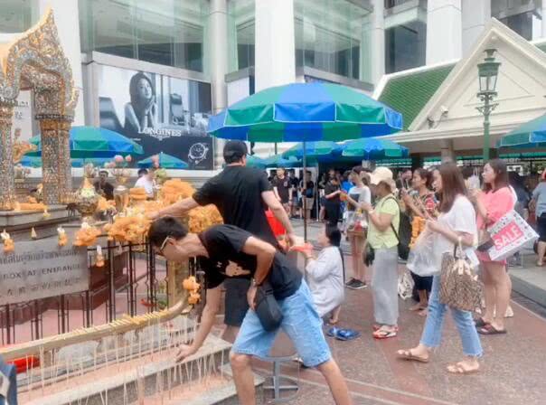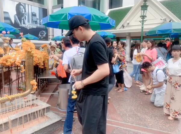 日前,有網(wǎng)友曬出翟天臨在四川宜賓幫助救災的照片,隨后又有網(wǎng)友曝光一組泰國偶遇翟天臨的照片。照片中翟天臨戴著黑色鴨舌帽,打扮低調。人群中翟天臨手拿香雙膝跪地祈福,看上去誠意十足,起身之后就拿著手里的香立在壇內。
