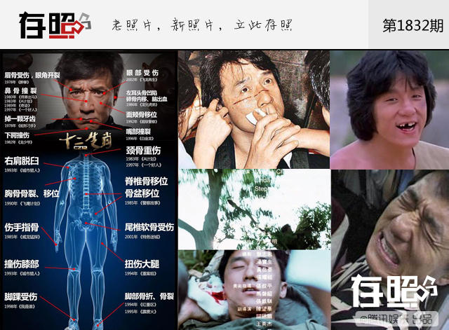 【成龍身上大傷小傷無數】功夫巨星成龍如今已獲奧斯卡終身成就獎,功成名就。但這都是成龍在經歷無數生與死的考驗后換來的。成龍電影,大多驚、險、奇,每個動作鏡頭都非常有風險。拍戲幾十年來,成龍身上大傷小傷無數?!妒ぁ沸麄鲿r,一張成龍受傷分布圖,觸目驚心,頭骨凹陷、骨折、肩膀脫臼、脊椎位移、掉牙……成龍電影片尾都會收藏受傷花絮,其中最令人看得膽戰心驚的,莫過于一次在前南斯拉夫拍攝外景時,頭部跌成重傷,險些喪命;一次在拍攝高空跳越巴士穿過廣告牌時,失足直跌地面,觀眾隔著屏幕都能感受到巨痛。不過每一次的創傷,及每一次的成功挑戰,都標志著成龍動作又向前進了一步,也使成龍成為當今身價最高的功夫巨星。