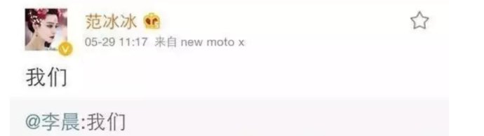 兩個人相識于《武媚娘傳奇》,范冰冰第一條艾特李晨的微博是這樣——