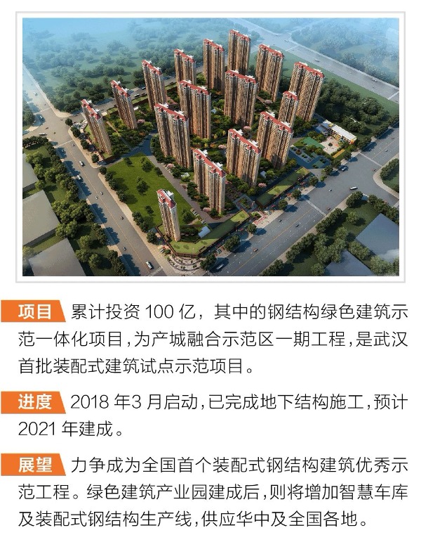 項目預計2021年完工,這是中建鋼構有限公司在蔡甸區投資100億元參建的項目之一,也是該公司打造的鋼結構綠色建筑運用示范一體化項目。該項目設計總監陳選權介紹,鋼結構綠色建筑運用示范一體化項目是指采用鋼結構施工的,具有實際應用價值和示范價值的建筑工程。
