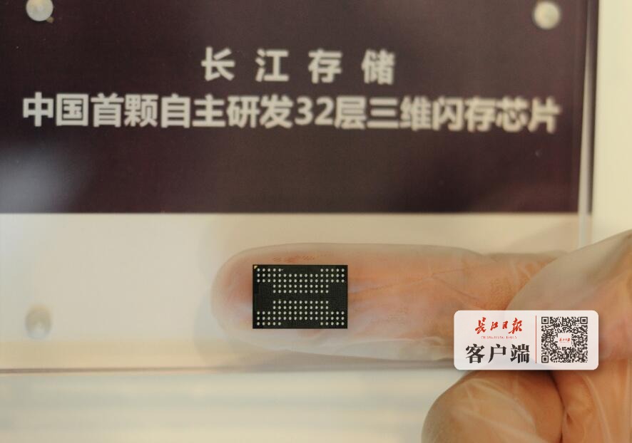5月14日,國家存儲器基地長江存儲生產的中國首顆自主研發32層三維閃存芯片。 記者高勇 攝