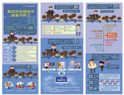 一、第四次全國經濟普查的登記工作于2019年1-4月開展。屆時將有佩戴普查員證或普查指導員證的普查人員進入你單位進行登記。