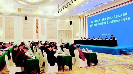 2018年11月13日至14日,省人大常委會在咸寧舉辦專題學習班,深入學習貫徹習近平總書記關于堅持和完善人民代表大會制度的重要思想。