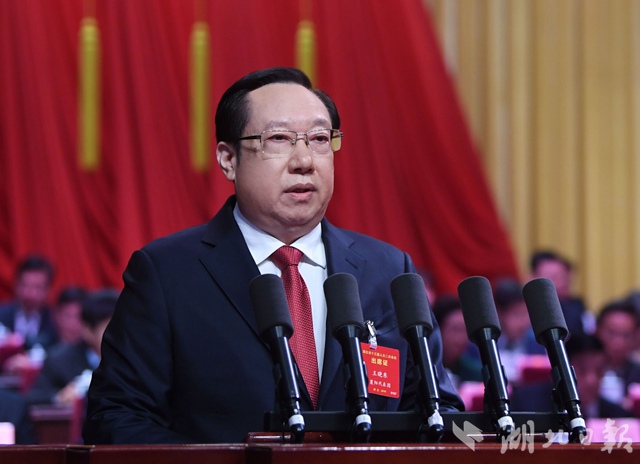 王曉東說,2018年極不平凡,在湖北發展史上具有里程碑意義。習近平總書記再次視察湖北,寄予“奮力譜寫新時代湖北發展新篇章”的殷切期望,指明“四個切實”的科學路徑,為我們提供了根本遵循、增添了強大動力。一年來,我們堅持以習近平新時代中國特色社會主義思想為指導,全面貫徹黨的十九大精神,樹牢“四個意識”,堅定“四個自信”,堅決做到“兩個維護”,在省委堅強領導下,牢記囑托、感恩奮進,有效應對外部環境深刻變化、困難風險明顯增多的重大挑戰,聚焦聚力落實長江經濟帶發展戰略、推動高質量發展、實施鄉村振興戰略、做好民生工作、加強作風建設,經濟運行穩中有進,三大攻堅戰扎實推進,創新驅動提速前進,改革開放互促共進,民生福祉不斷增進,較好完成了省十三屆人大一次會議確定的目標任務,交出了一份沉甸甸的答卷。