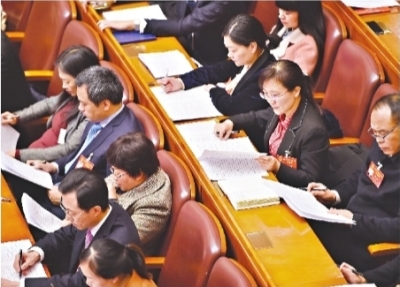 省人大代表專注聽會,認真閱讀《政府工作報告》 長江日報記者郭良朔 攝