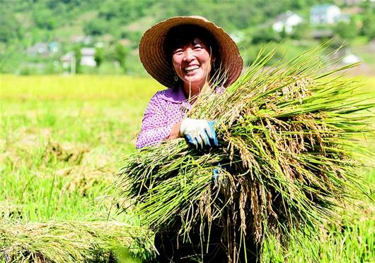 圖為:秭歸縣九畹溪鎮石柱土家族村高山冷水稻豐收。(視界網鄭家裕 攝)