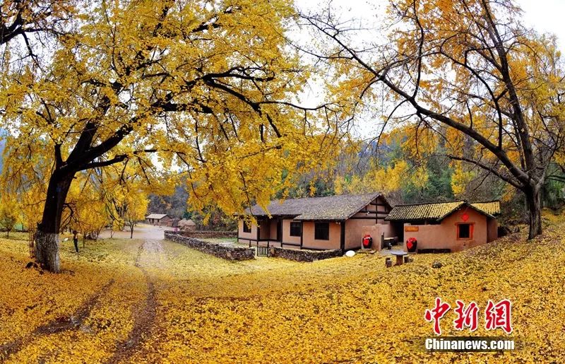 鄉(xiāng)村舊宅前金衣襲地